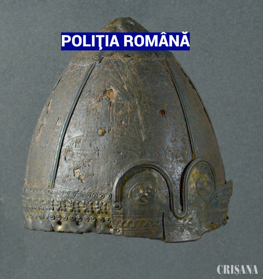 Polițiștii au recuperat calota unui coif medieval, de sorginte vikingă, unicat în România și printre puținele exemplare cunoscute în Europa.