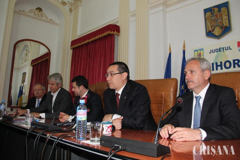Invazie de social-democraţi ieri, în municipiul de pe Crişul Repede, unde a fost programat un miting electoral al Alianţei PSD-UNPR-PC. Pe lângă membrii şi simpatizanţii PSD din judeţ, la întâlnire au fost prezenţi premierul Victor Ponta, vicepremierii Liviu Dragnea şi Daniel Constantin, preşedintele Camerei Deputaţilor, Valeriu Zgonea, dar şi candidaţi la alegerile europene pe lista Alianţei. Programul premierului în Oradea a cuprins o vizită la firma Celestica. La ieşire, Victor Ponta a dat un răspuns primarului Ilie Bolojan şi reprezentanţilor mediului de afaceri care s-au plâns de introducerea aşa zisei "taxe pe stâlp". "Taxa a fost aprobată în urmă cu opt luni de zile de un ministru de finanţe liberal şi nu a fost nicio reacţie. Acum, cu două zile înainte de alegeri, este o problemă. Vom avea în 25 mai, duminică, raportările. Vom avea impactul, care, dacă este aşa cum observ, cu încasări mult mai mari la buget decât am preconizat iniţial, ne permite două lucruri. În primul rând, să reducem contribuţia de asigurări sociale, şi cred că pentru orice angajator, şi pentru cei de aici cu 1.200 de angajaţi, şi pentru cei care vor să creeze locuri de muncă, este o veste foarte bună, ca şi scutirea pe impozitul reinvestit. De asemenea, acolo unde impactul este semnificativ, ne permite să adaptăm în Parlament prevederile acestei scutiri de taxe care nu mai funcţionează", a declarat premierul. De asemenea, acesta a precizat că firmele care dezvoltă afaceri în parcurile industriale sunt scutite de la plata impozitelor locale. "Este decizia autorităţilor locale. Dacă Primăria nu mai vrea să acorde aceste scutiri, noi tocmai am dat Primăriei 40 de hectare pentru a face un parc industrial. Îl luăm de la Primărie şi îl dăm Consiliului Judeţean şi Consiliul Judeţean va dezvolta în continuare afaceri", susţine premierul. Totodată, Victor Ponta a afirmat că în timpul vizitelor făcute în ultima lună la principalele investiţii din România, reprezentanţii companiilor i-au spus că vor să investească în continuare în România. "Şi deodată, acum, primarul (Ilie Bolojan - n.r.), cu două zile înainte de alegeri, spune că vrea să plece cineva. Atâta timp cât România este o ţară stabilă, predictibilă şi cu condiţii care favorizează mediul de afaceri, vom continua să avem creştere economică", a mai declarat premierul. Următoarea oprire a fost la Prefectura Bihor, unde ministrul Fondurilor Europene, Eugen Teodorovici, şi reprezentanţii firmelor SC Sapient SRL, SC Tony Invent SRL, SC Afaceri Orădene SRL au semnat contractele de finanţare aferente Polului de Competitivitate Farmaterm. Valoarea totală a celor patru proiecte este de 56 milioane lei, din care valoarea fondurilor UE (nerambursabile) este de 26,3 milioane lei.