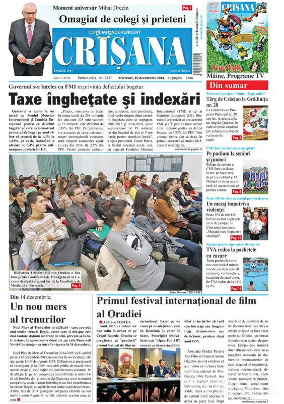 Fondat la Oradea, în anul 1945, cotidianul Crişana este una dintre cele mai longevive publicaţii locale, cu o apariţie neîntreruptă de 81 de ani.