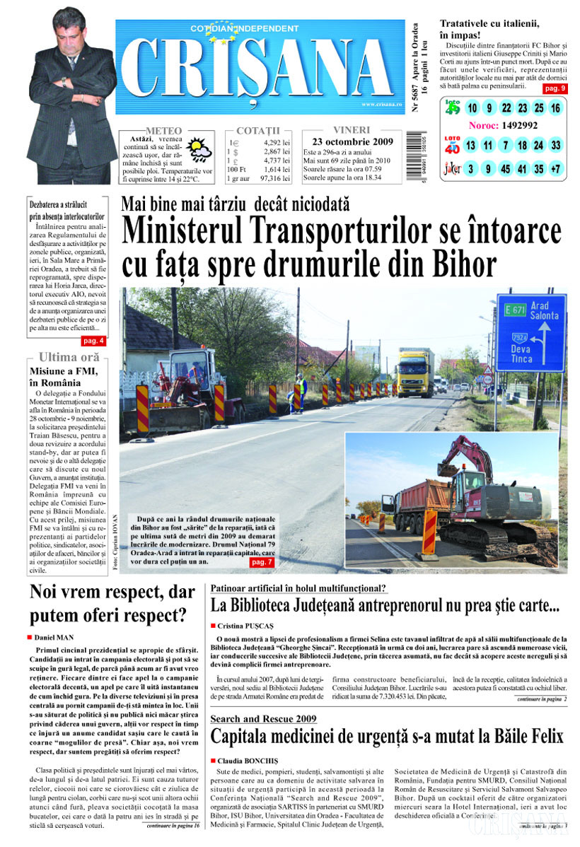 Fondat la Oradea, în anul 1945, cotidianul Crişana este una dintre cele mai longevive publicaţii locale, cu o apariţie neîntreruptă de 81 de ani.
