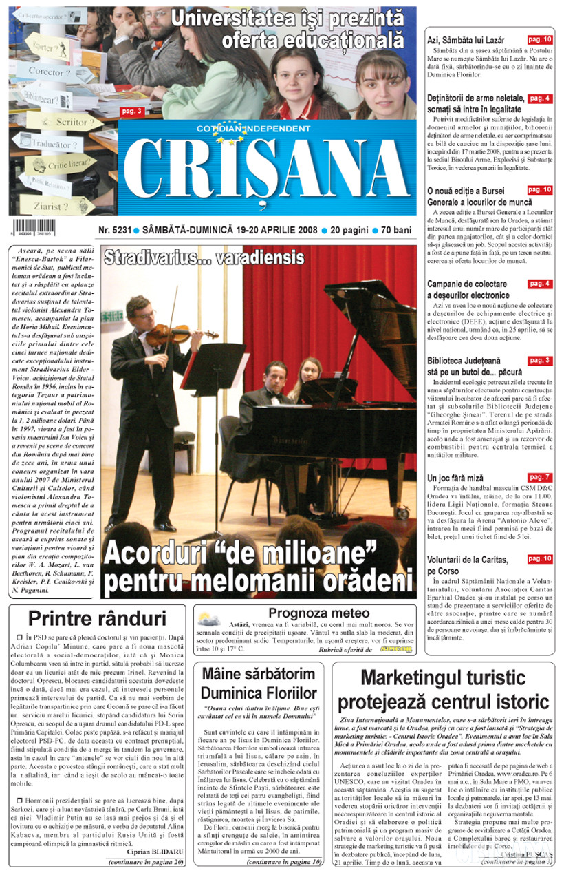 Fondat la Oradea, în anul 1945, cotidianul Crişana este una dintre cele mai longevive publicaţii locale, cu o apariţie neîntreruptă de 81 de ani.