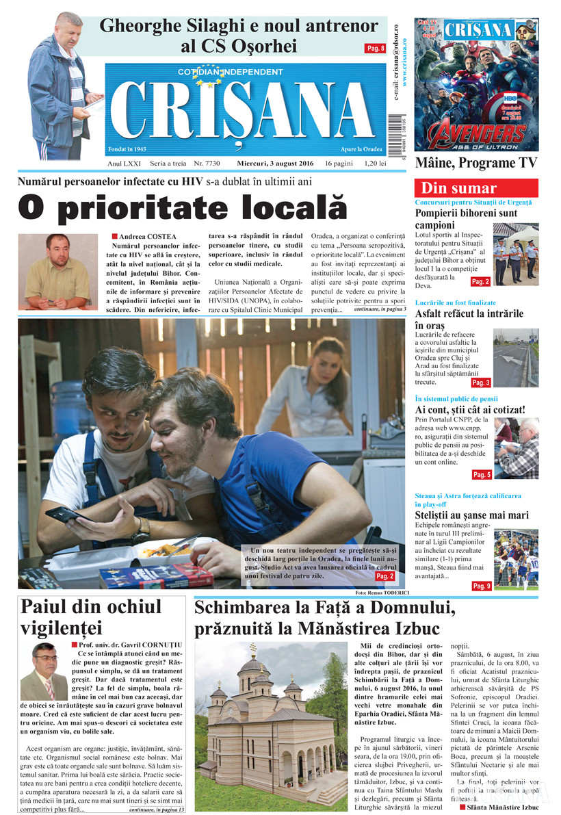Fondat la Oradea, în anul 1945, cotidianul Crişana este una dintre cele mai longevive publicaţii locale, cu o apariţie neîntreruptă de 81 de ani.