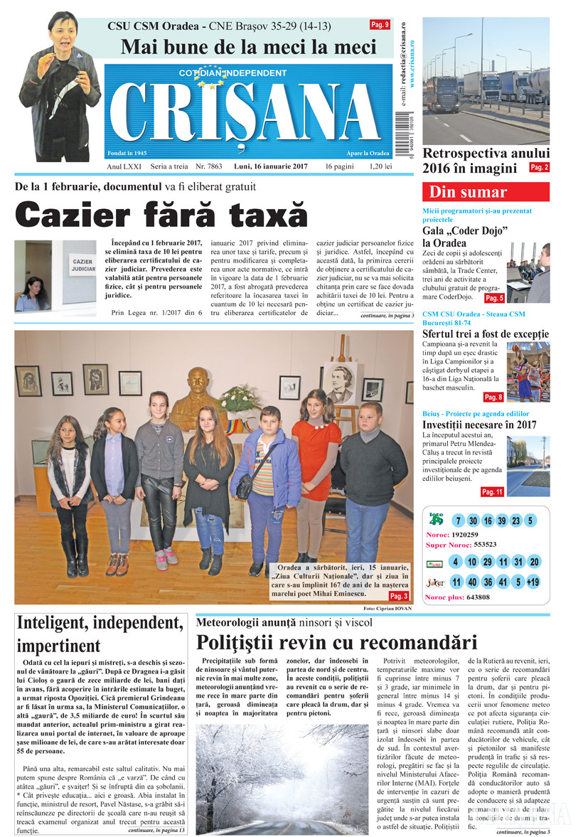 Fondat la Oradea, în anul 1945, cotidianul Crişana este una dintre cele mai longevive publicaţii locale, cu o apariţie neîntreruptă de 80 de ani.