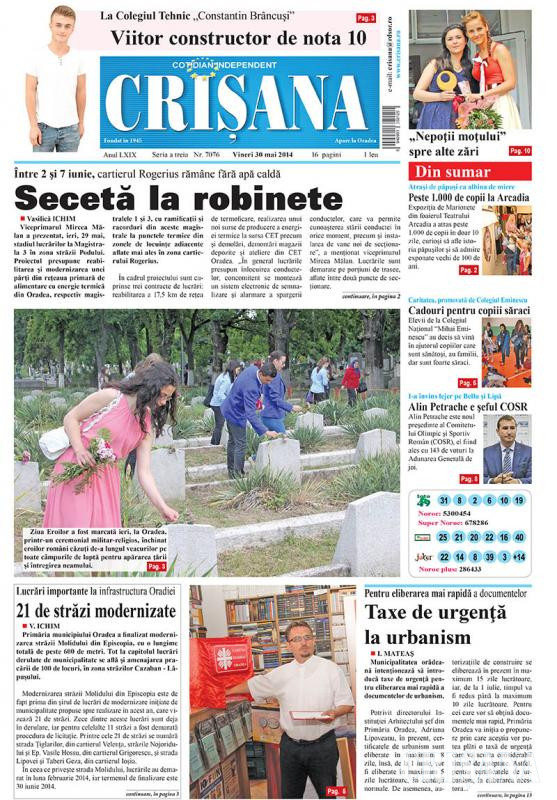 Fondat la Oradea, în anul 1945, cotidianul Crişana este una dintre cele mai longevive publicaţii locale, cu o apariţie neîntreruptă de 80 de ani.