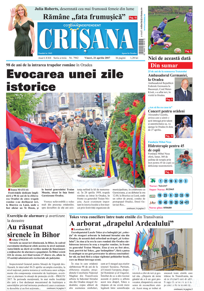 Fondat la Oradea, în anul 1945, cotidianul Crişana este una dintre cele mai longevive publicaţii locale, cu o apariţie neîntreruptă de 81 de ani.