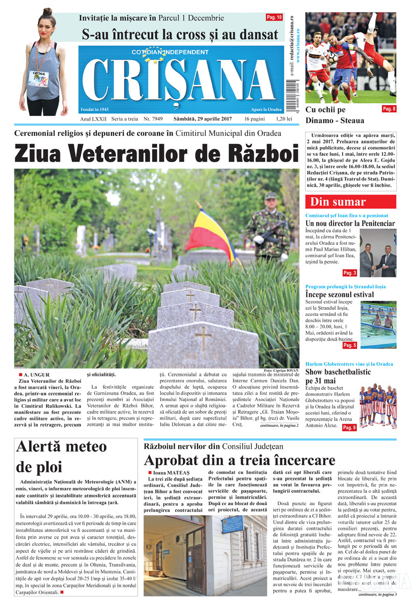 Fondat la Oradea, în anul 1945, cotidianul Crişana este una dintre cele mai longevive publicaţii locale, cu o apariţie neîntreruptă de 81 de ani.