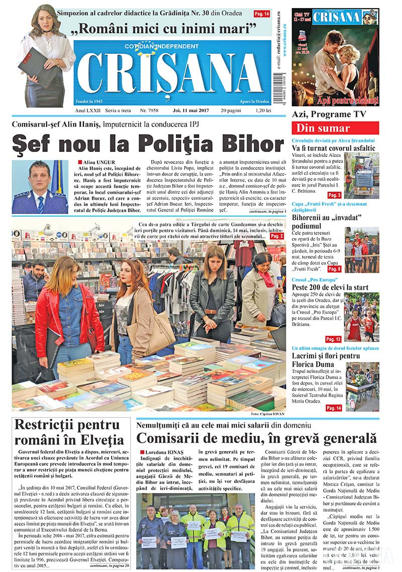 Fondat la Oradea, în anul 1945, cotidianul Crişana este una dintre cele mai longevive publicaţii locale, cu o apariţie neîntreruptă de 81 de ani.