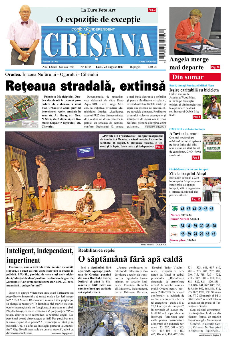Fondat la Oradea, în anul 1945, cotidianul Crişana este una dintre cele mai longevive publicaţii locale, cu o apariţie neîntreruptă de 80 de ani.