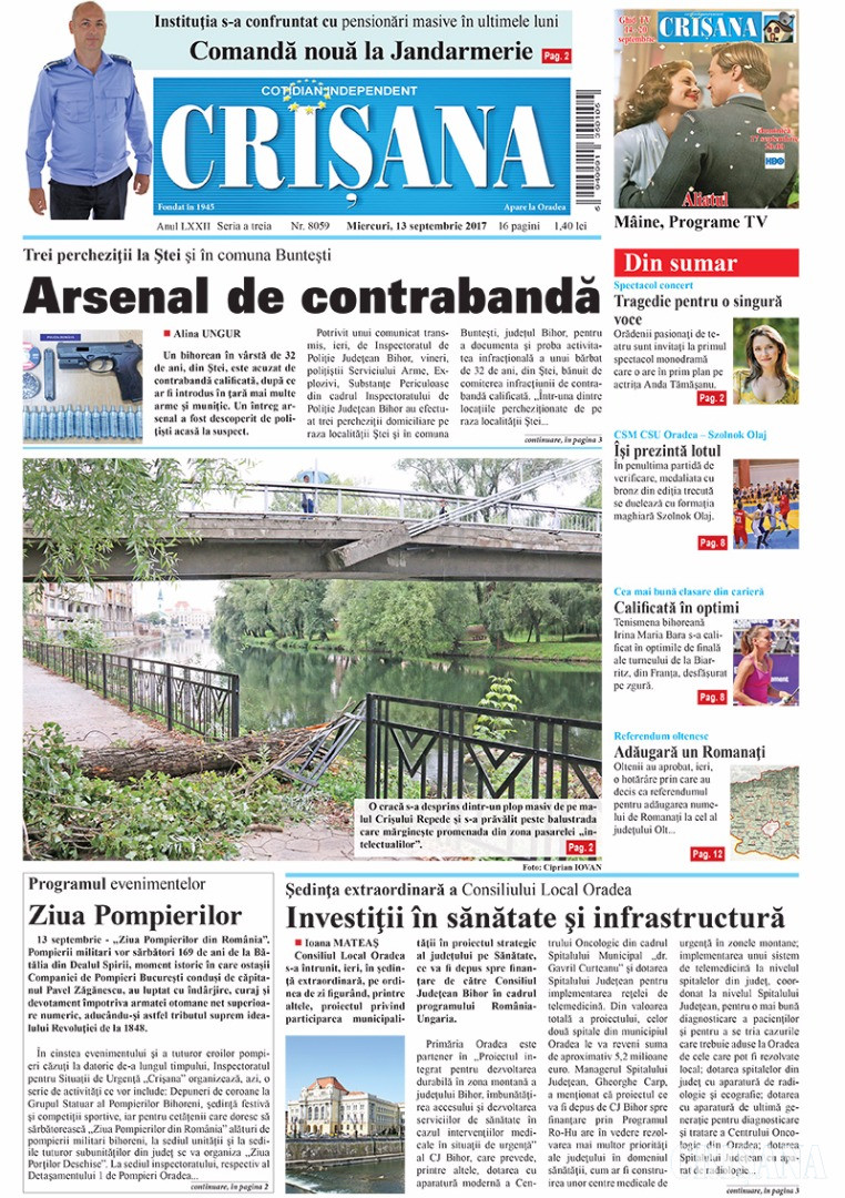 Fondat la Oradea, în anul 1945, cotidianul Crişana este una dintre cele mai longevive publicaţii locale, cu o apariţie neîntreruptă de 81 de ani.