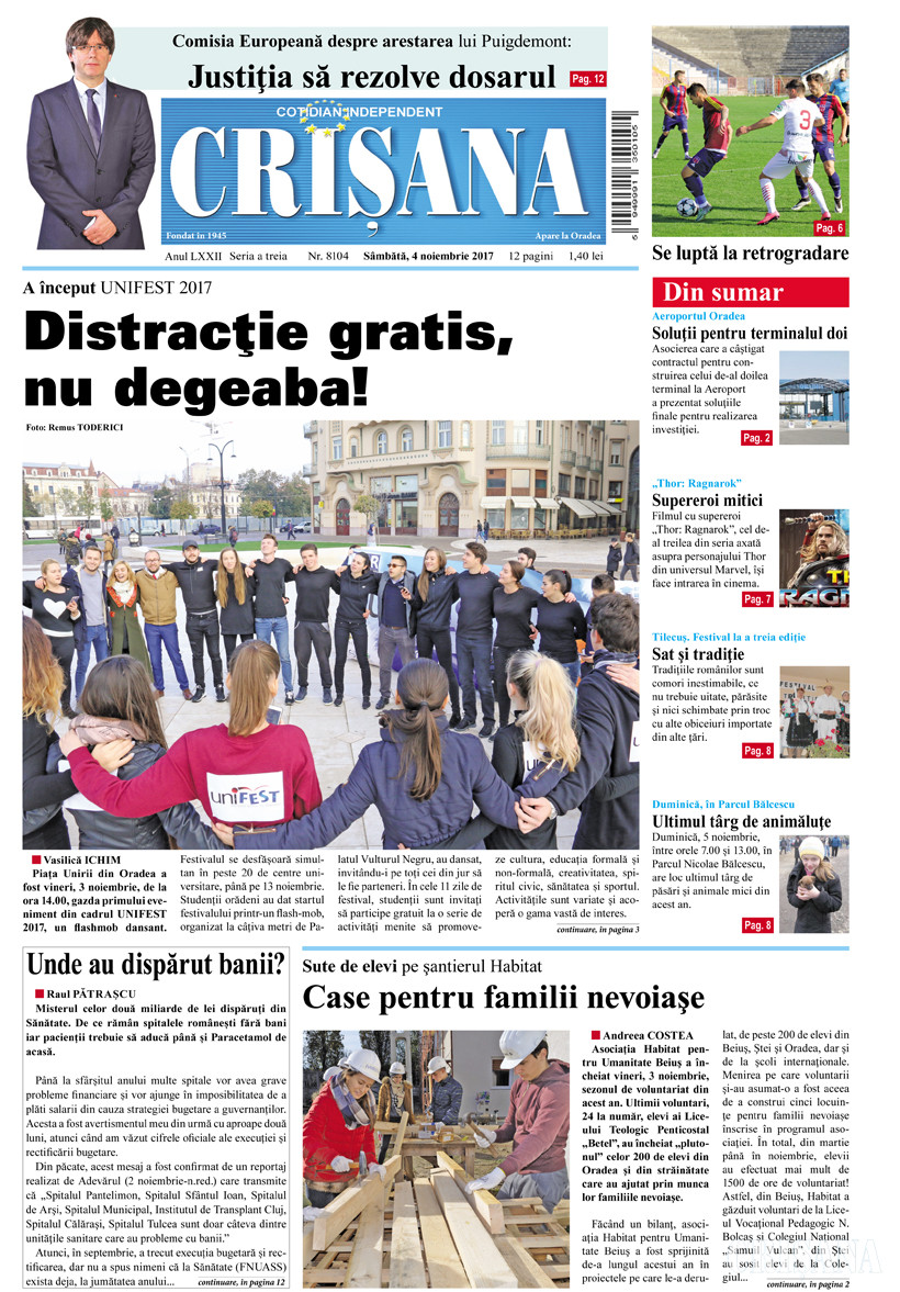 Fondat la Oradea, în anul 1945, cotidianul Crişana este una dintre cele mai longevive publicaţii locale, cu o apariţie neîntreruptă de 81 de ani.