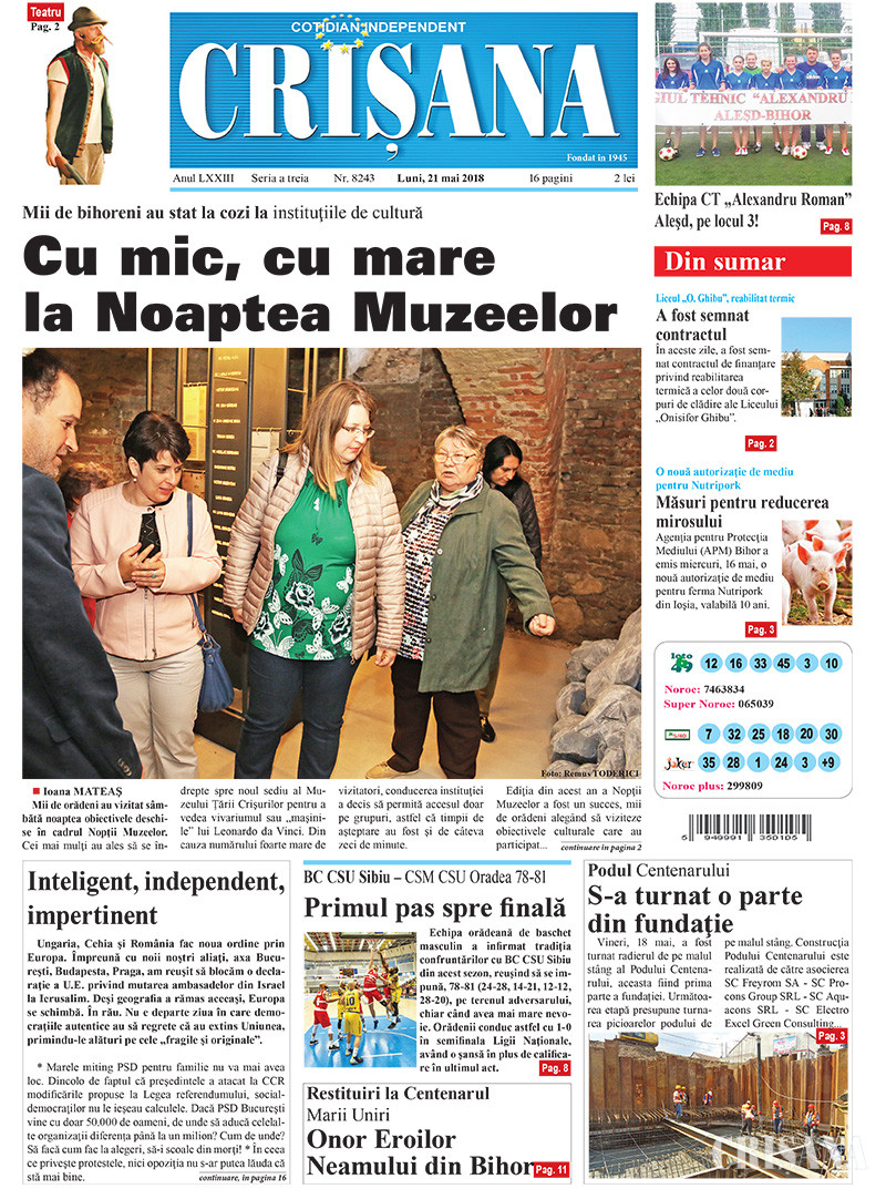 Fondat la Oradea, în anul 1945, cotidianul Crişana este una dintre cele mai longevive publicaţii locale, cu o apariţie neîntreruptă de 81 de ani.