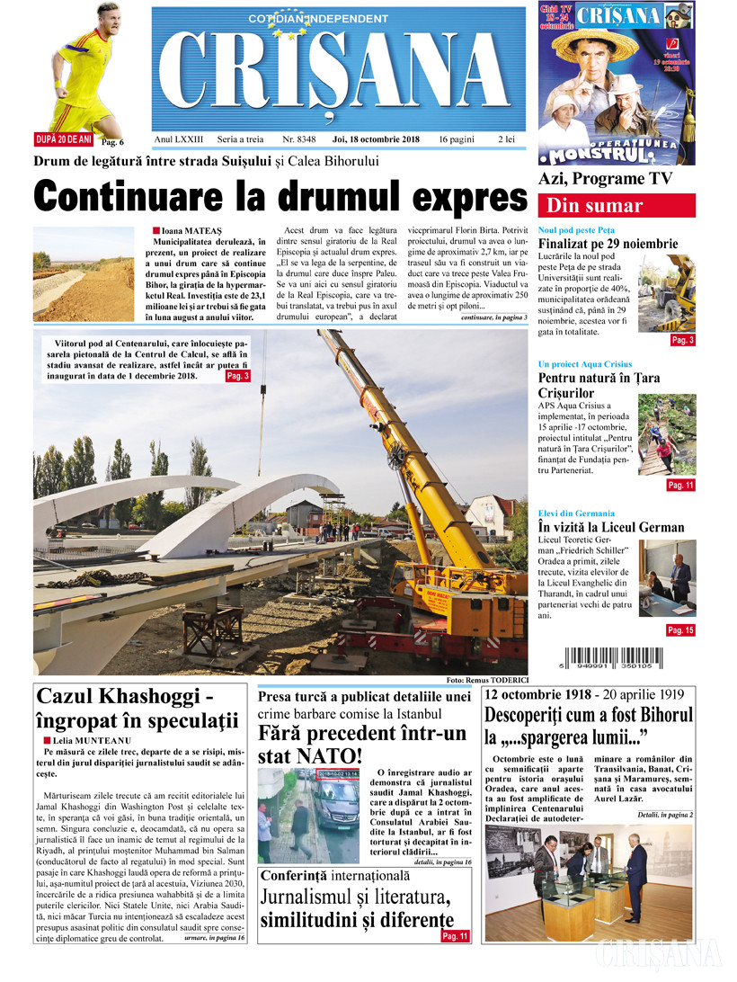 Fondat la Oradea, în anul 1945, cotidianul Crişana este una dintre cele mai longevive publicaţii locale, cu o apariţie neîntreruptă de 81 de ani.