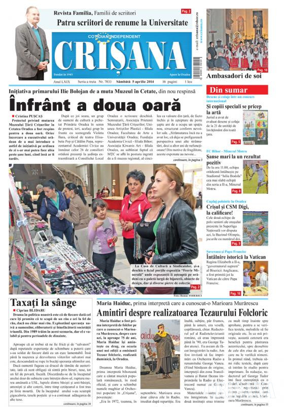 Fondat la Oradea, în anul 1945, cotidianul Crişana este una dintre cele mai longevive publicaţii locale, cu o apariţie neîntreruptă de 81 de ani.