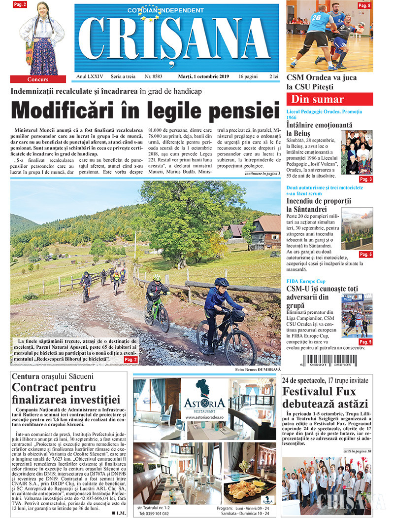 Fondat la Oradea, în anul 1945, cotidianul Crişana este una dintre cele mai longevive publicaţii locale, cu o apariţie neîntreruptă de 81 de ani.