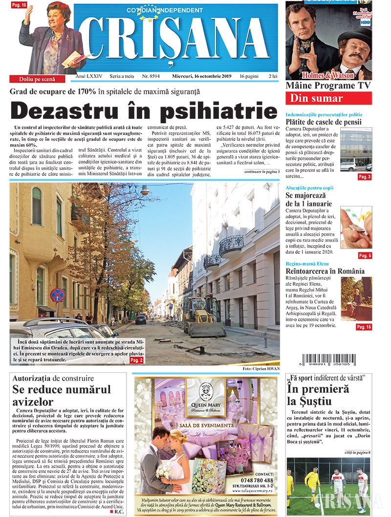 Fondat la Oradea, în anul 1945, cotidianul Crişana este una dintre cele mai longevive publicaţii locale, cu o apariţie neîntreruptă de 80 de ani.