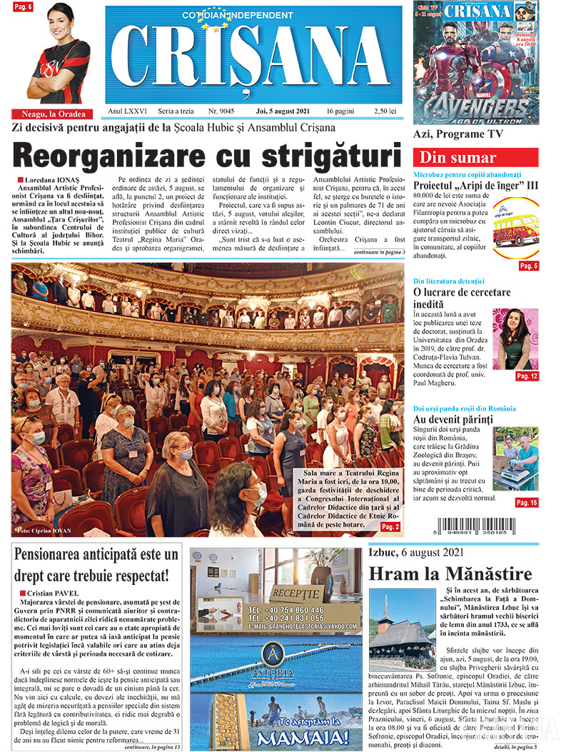 Fondat la Oradea, în anul 1945, cotidianul Crişana este una dintre cele mai longevive publicaţii locale, cu o apariţie neîntreruptă de 81 de ani.