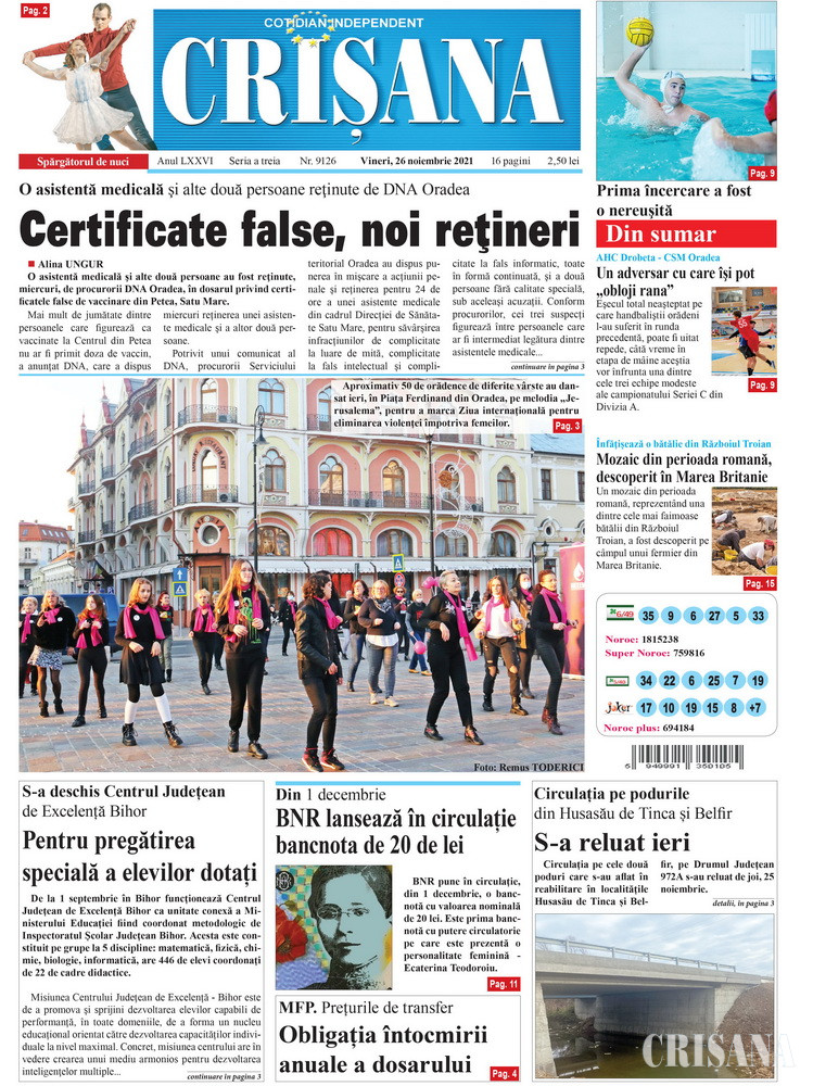 Beiuș - Viitorii economiști și-au prezentat proiectele Orașul de pe Crișul Repede strălucește pe marele ecran - Ramon aduce Crăciunul înapoi la Oradea Universitatea din Oradea. Ediția a XVI-a: Sesiunea doctoranzilor în istorie Lansare de carte - „Povestea slovacilor din Huta” Se lipesc autocolante informative la intrările în scările de bloc - Campania „Nepăsarea costă!” continuă Strada Louis Pasteur - Restricții la pasajul feroviar