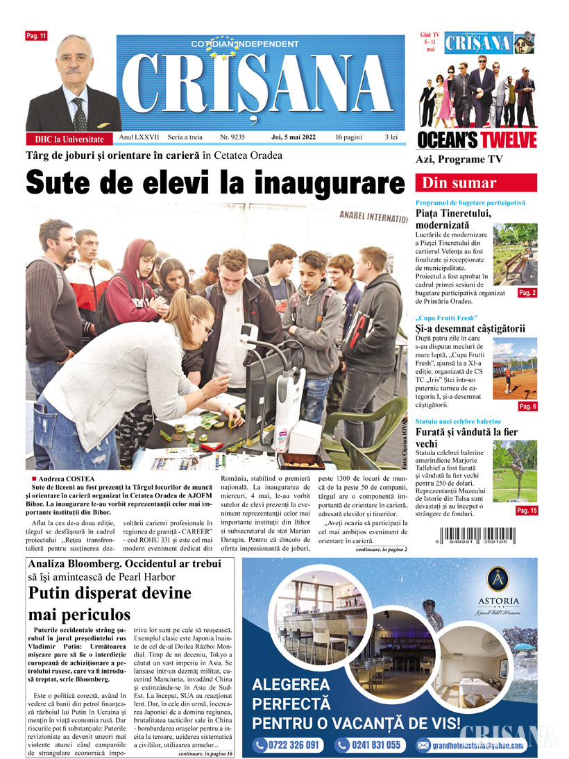 Fondat la Oradea, în anul 1945, cotidianul Crişana este una dintre cele mai longevive publicaţii locale, cu o apariţie neîntreruptă de 81 de ani.