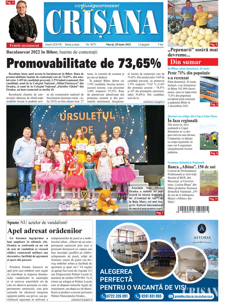 Fondat la Oradea, în anul 1945, cotidianul Crişana este una dintre cele mai longevive publicaţii locale, cu o apariţie neîntreruptă de 80 de ani.