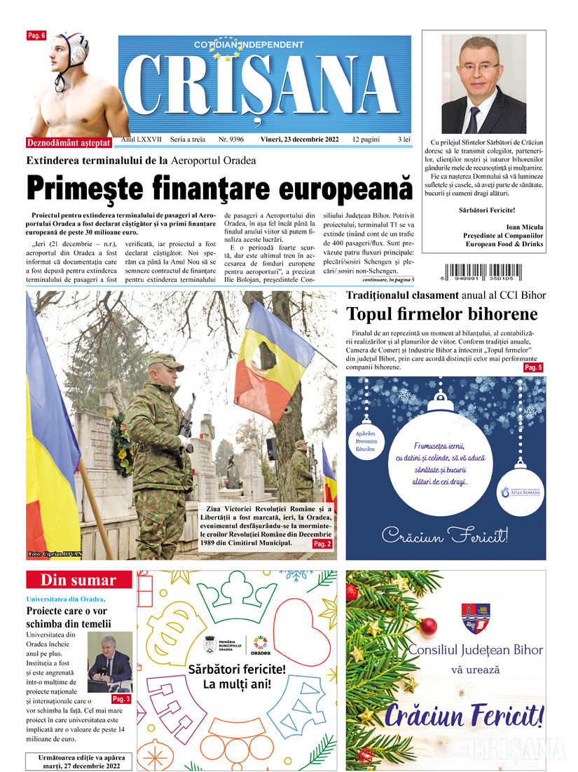Fondat la Oradea, în anul 1945, cotidianul Crişana este una dintre cele mai longevive publicaţii locale, cu o apariţie neîntreruptă de 80 de ani.
