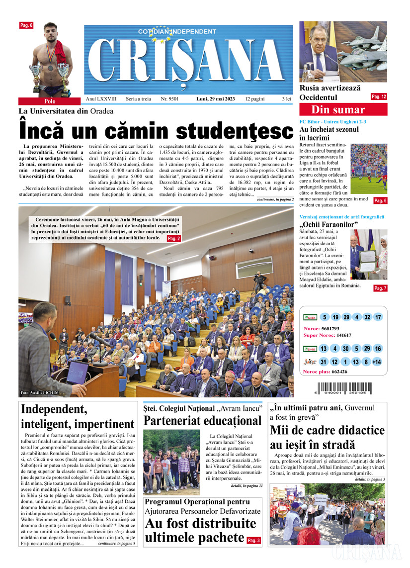 Fondat la Oradea, în anul 1945, cotidianul Crişana este una dintre cele mai longevive publicaţii locale, cu o apariţie neîntreruptă de 81 de ani.