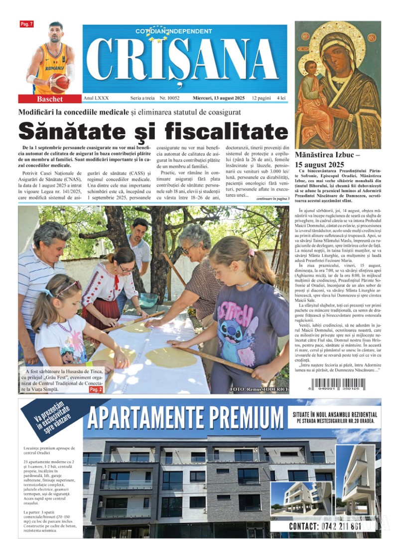 Fondat la Oradea, în anul 1945, cotidianul Crişana este una dintre cele mai longevive publicaţii locale, cu o apariţie neîntreruptă de 80 de ani.