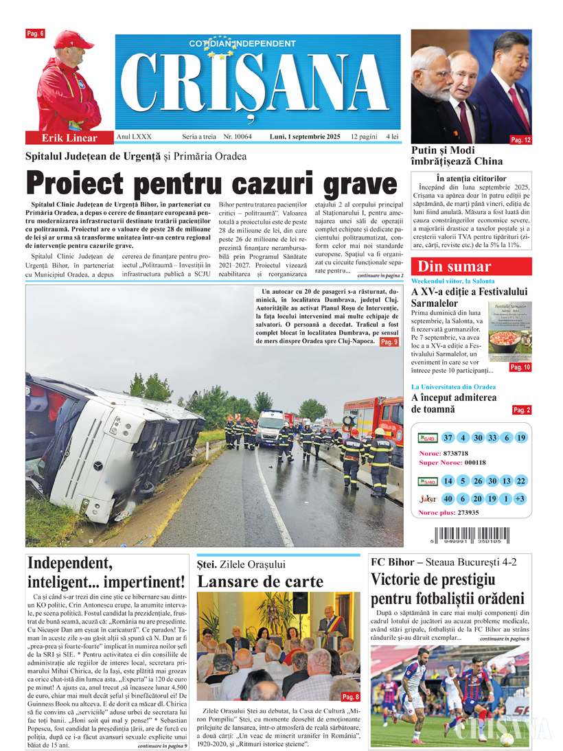 Fondat la Oradea, în anul 1945, cotidianul Crişana este una dintre cele mai longevive publicaţii locale, cu o apariţie neîntreruptă de 80 de ani.