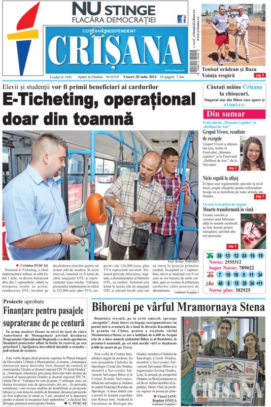 Fondat la Oradea, în anul 1945, cotidianul Crişana este una dintre cele mai longevive publicaţii locale, cu o apariţie neîntreruptă de 81 de ani.