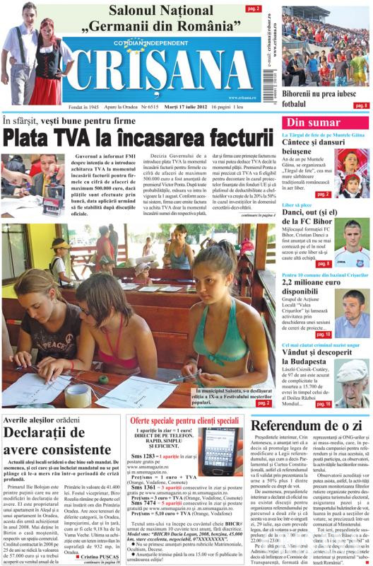 Fondat la Oradea, în anul 1945, cotidianul Crişana este una dintre cele mai longevive publicaţii locale, cu o apariţie neîntreruptă de 81 de ani.