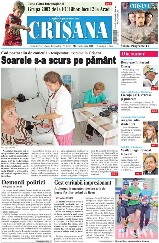 Fondat la Oradea, în anul 1945, cotidianul Crişana este una dintre cele mai longevive publicaţii locale, cu o apariţie neîntreruptă de 81 de ani.