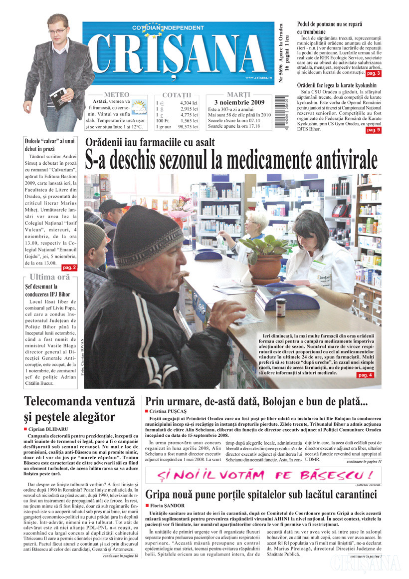 Fondat la Oradea, în anul 1945, cotidianul Crişana este una dintre cele mai longevive publicaţii locale, cu o apariţie neîntreruptă de 81 de ani.