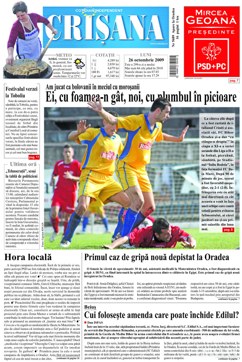 Fondat la Oradea, în anul 1945, cotidianul Crişana este una dintre cele mai longevive publicaţii locale, cu o apariţie neîntreruptă de 81 de ani.