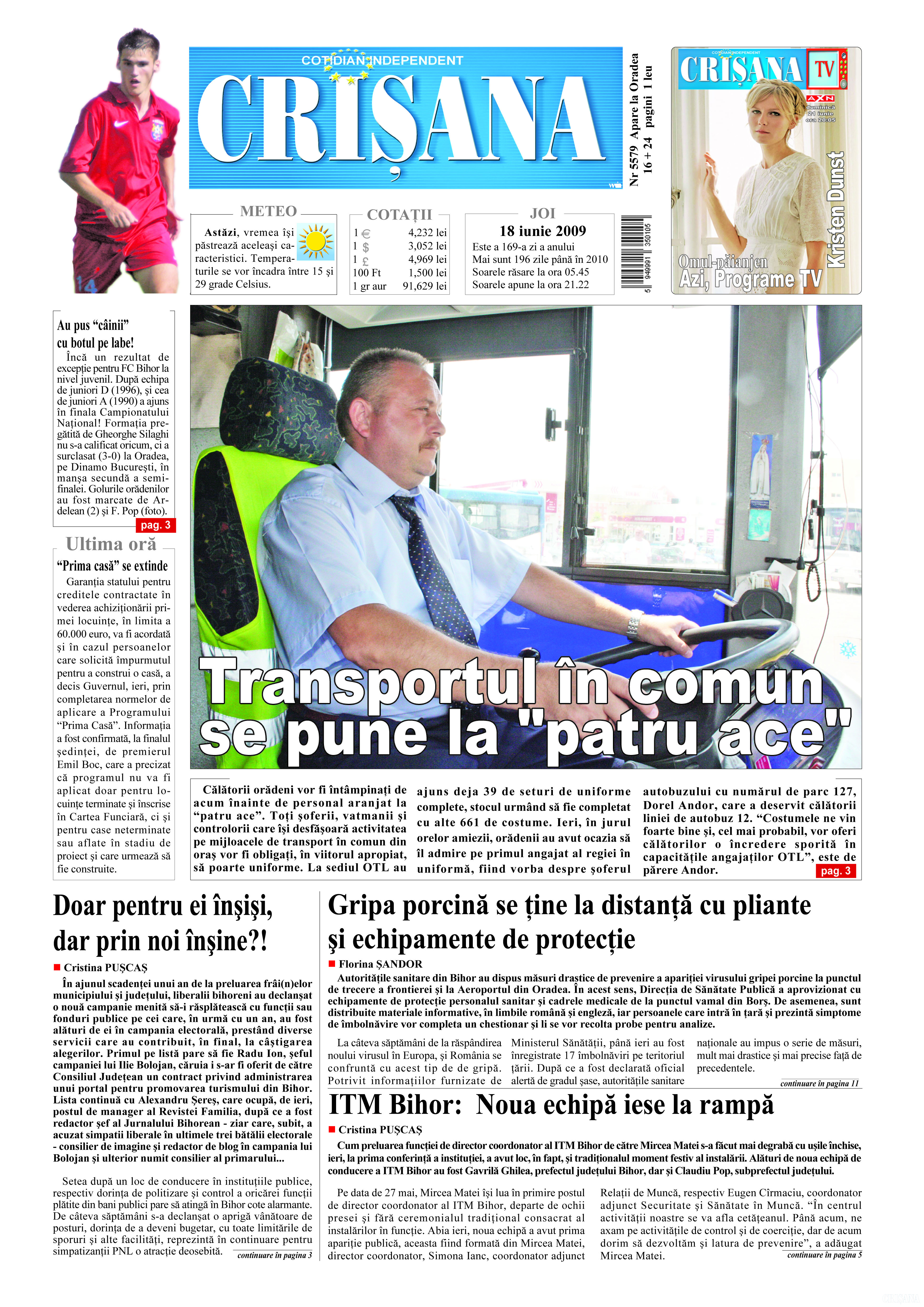 Fondat la Oradea, în anul 1945, cotidianul Crişana este una dintre cele mai longevive publicaţii locale, cu o apariţie neîntreruptă de 80 de ani.