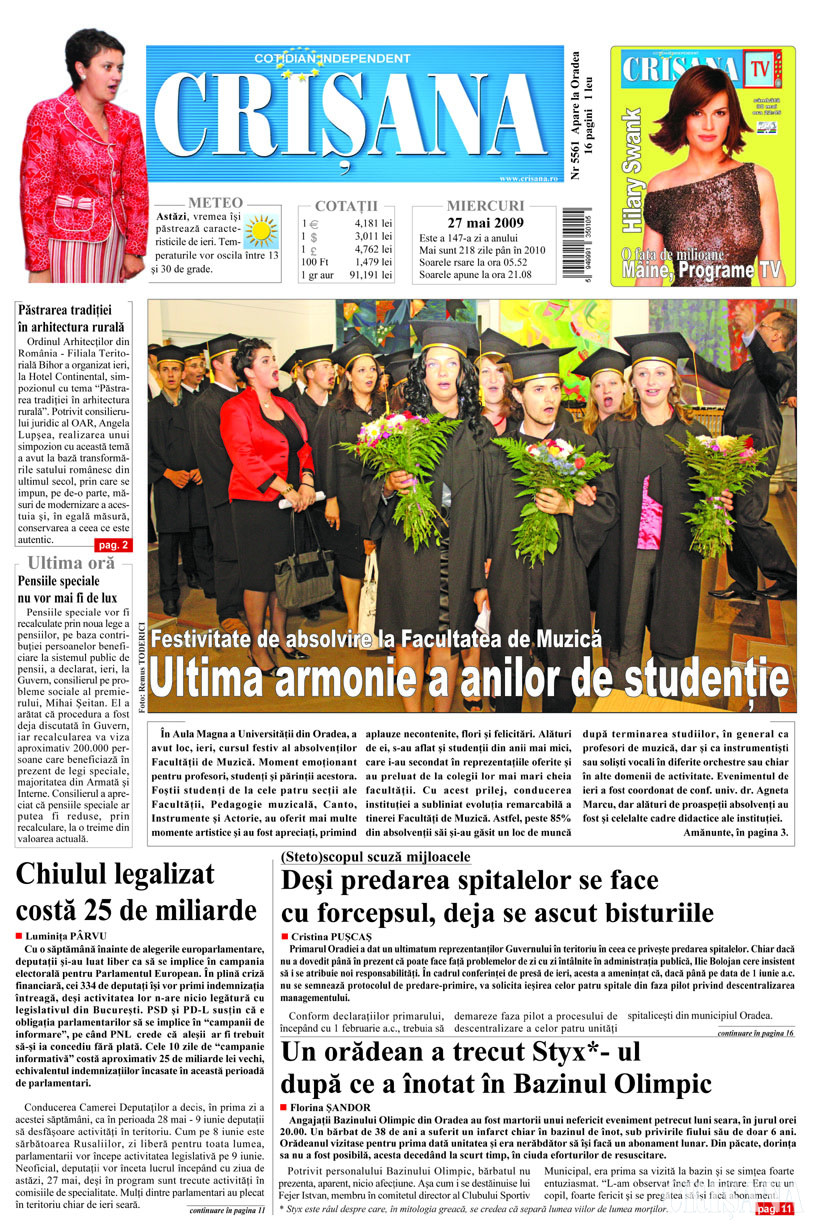 Fondat la Oradea, în anul 1945, cotidianul Crişana este una dintre cele mai longevive publicaţii locale, cu o apariţie neîntreruptă de 80 de ani.