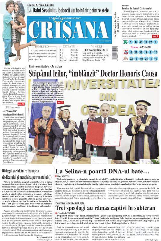 Fondat la Oradea, în anul 1945, cotidianul Crişana este una dintre cele mai longevive publicaţii locale, cu o apariţie neîntreruptă de 81 de ani.