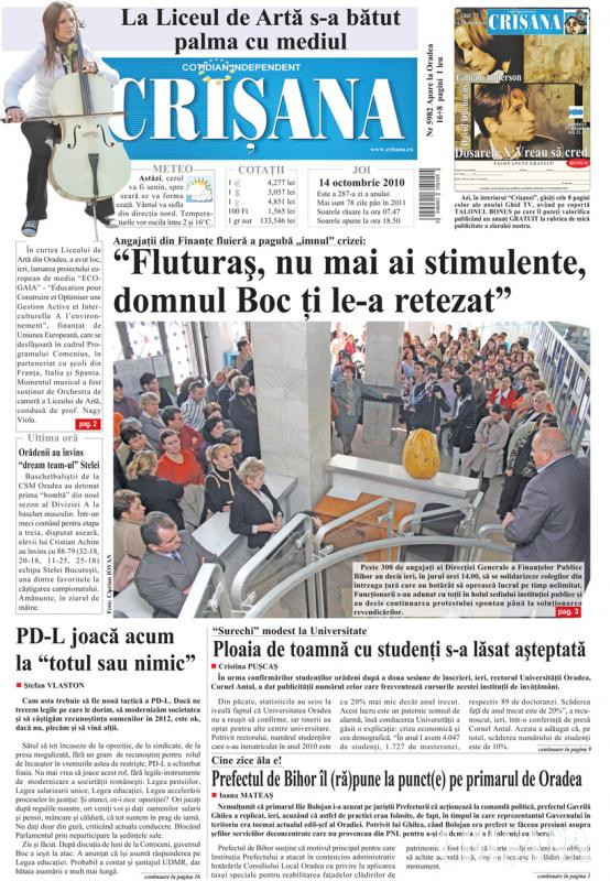 Fondat la Oradea, în anul 1945, cotidianul Crişana este una dintre cele mai longevive publicaţii locale, cu o apariţie neîntreruptă de 80 de ani.