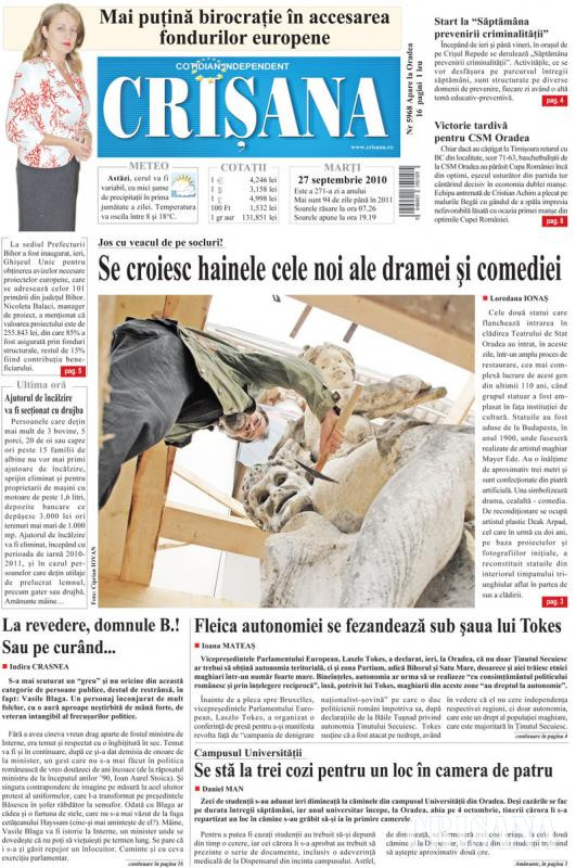 Fondat la Oradea, în anul 1945, cotidianul Crişana este una dintre cele mai longevive publicaţii locale, cu o apariţie neîntreruptă de 80 de ani.