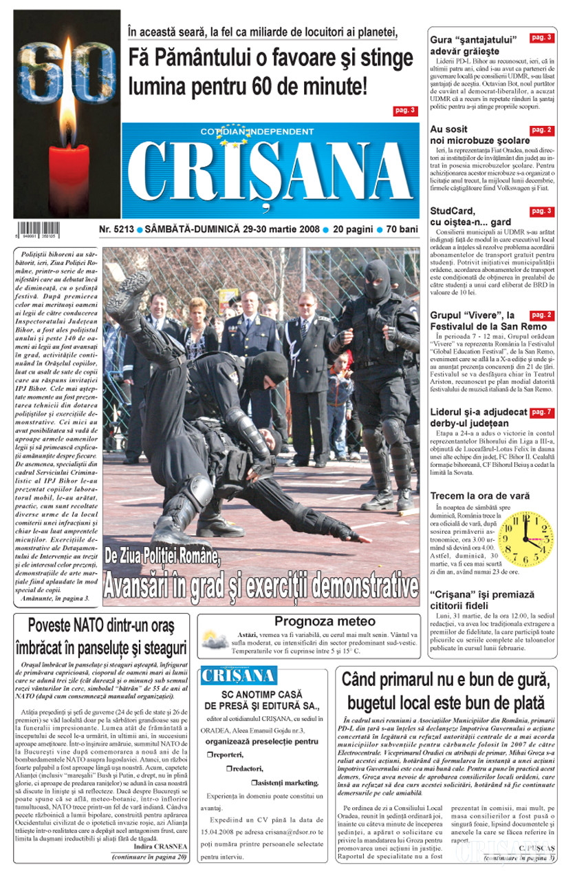 Fondat la Oradea, în anul 1945, cotidianul Crişana este una dintre cele mai longevive publicaţii locale, cu o apariţie neîntreruptă de 80 de ani.