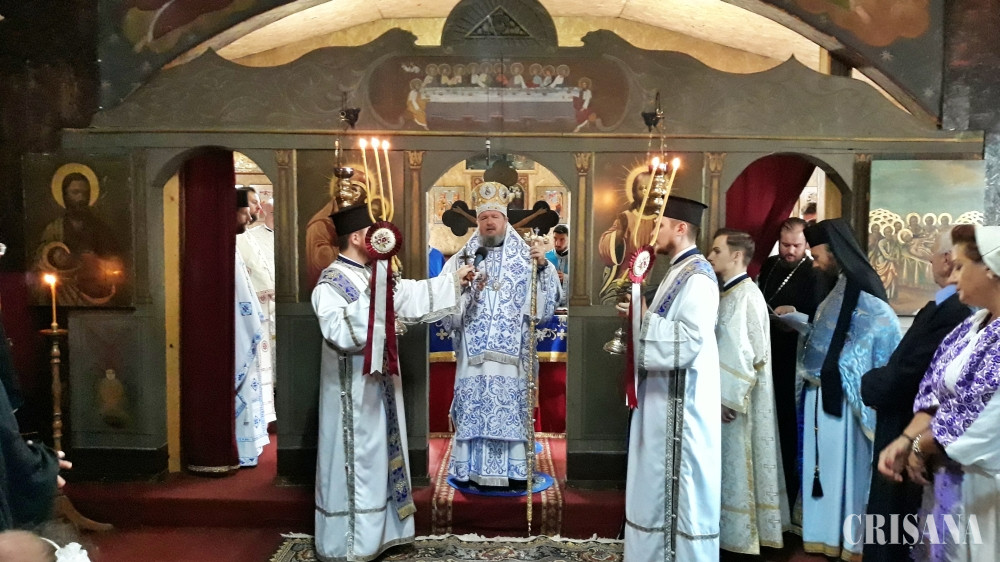 În însăși ziua praznicului, joi, 15 august, Sfânta Liturghie a fost săvârșită de Preasfințitul Părinte Sofronie, Episcopul Oradiei, împreună cu un sobor de ieromonahi, preoți și diaconi, în paraclisul provizoriu amenajat pentru slujire din apropierea noii biserici mari a mănăstirii.