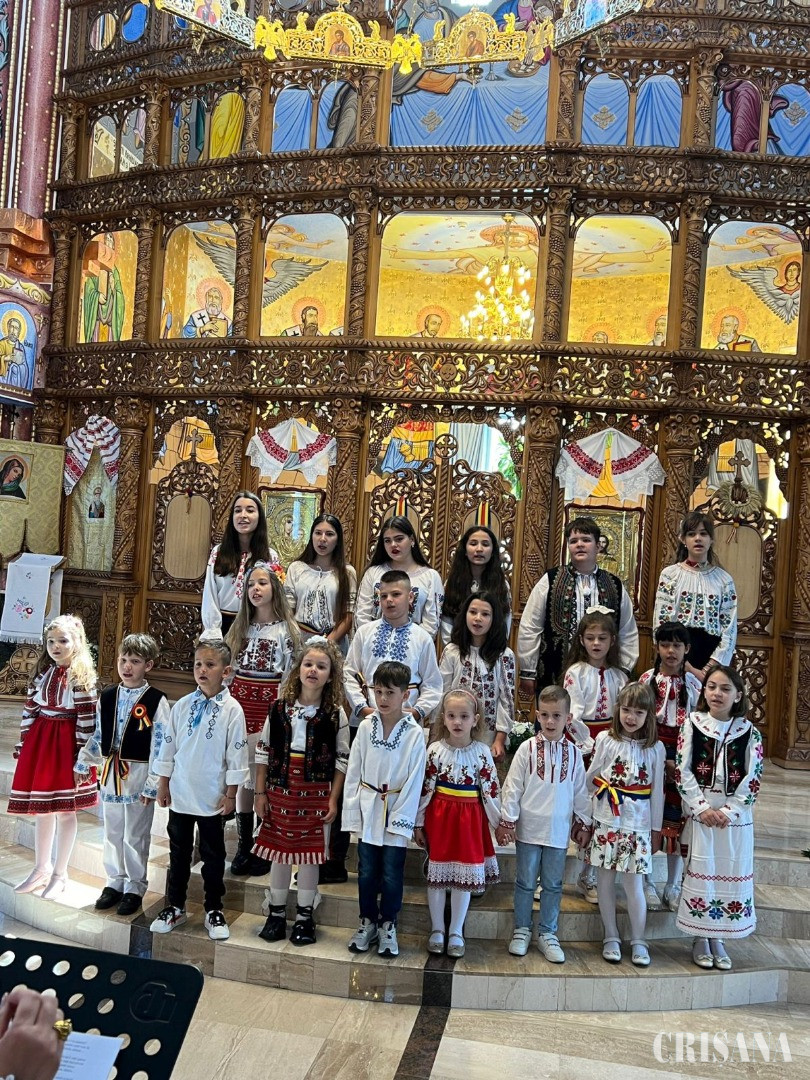 „Hristos a Înviat din morți,/ Cu moartea pe moarte călcând,/ Și celor din morminte,/ Viață daruindu-le!”, au cântat copilașii într-un glas.