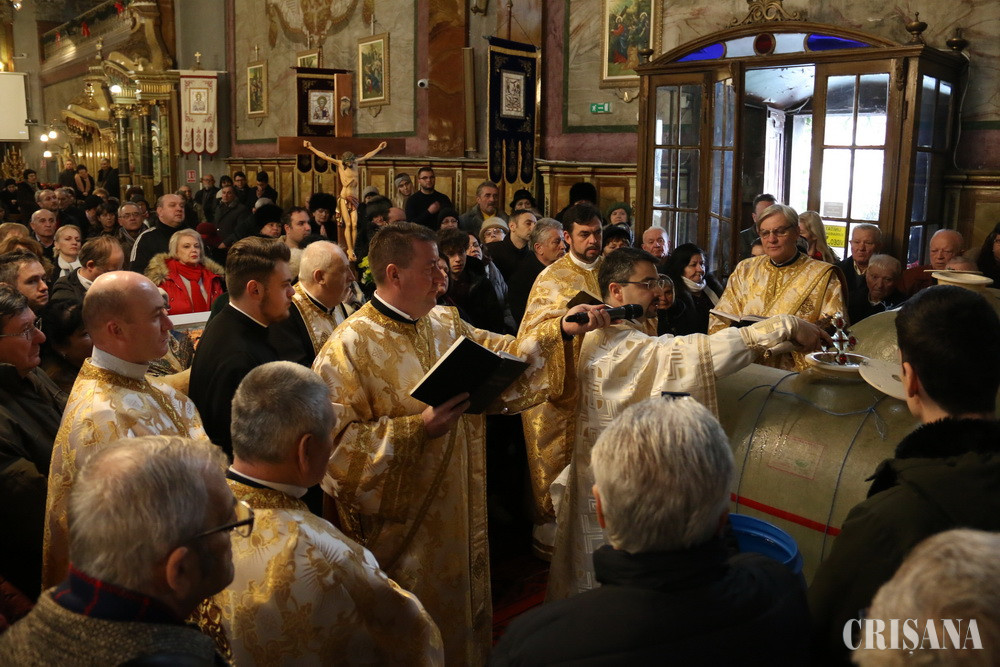 Mii de credincioşi au participat, ieri, la slujba de Bobotează oficiată în bisericile ortodoxe şi greco-catolice din Oradea şi Bihor. Soboare de preoţi au sfinţit tone de apă, iar oamenii au aşteptat, înarmaţi cu sticle şi bidoane, pentru a putea duce acasă Agheasma Mare, Apa Sfântă care are puteri vindecătoare.