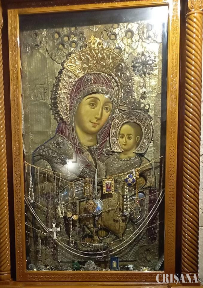 Înăuntrul basilicii avem ocazia minunată de a admira singura icoană din lume a Fecioarei Maria în care aceasta apare cu un chip fericit și luminos, pentru că aici a născut pe Pruncul ei, spre deosebire de alte icoane ale Maicii Domnului în care Ea are fața tristă, îndurerată după ce a văzut chinurile de pe cruce ale Fiului ei. Aflăm de la preoți că icoana se numește Betleemitisa sau Icoana care zâmbeşte. Ne închinăm cu venerație în fața acestei icoane unice așezată într-un baldachin situat chiar în dreapta treptelor care coboară în peștera nașterii Pruncului Iisus. Se crede că icoana a fost pictată de sfântul evanghelist Luca, având ferecătura din aur și argint, cu pietre prețioase dăruite de țarina Ecaterina cea Mare a Rusiei în urma unei minuni și binefaceri avute pe când a vizitat ea Țara Sfântă, dăruind pentru icoană biuteriile sale personale, inclusiv rubinele și a hotărât ca pe viitor viitoarele țarine să nu mai poarte rubine, acestea fiind un privilegiu exclusiv al Maicii Domnului, considerată de ea ca fiind Stăpâna lumii întregi. Mai aflăm de la preoți că multe femei au rămas însărcinate după ce s-au închinat cu credință în fața Născătoarei de Dumnezeu din Betleem.
