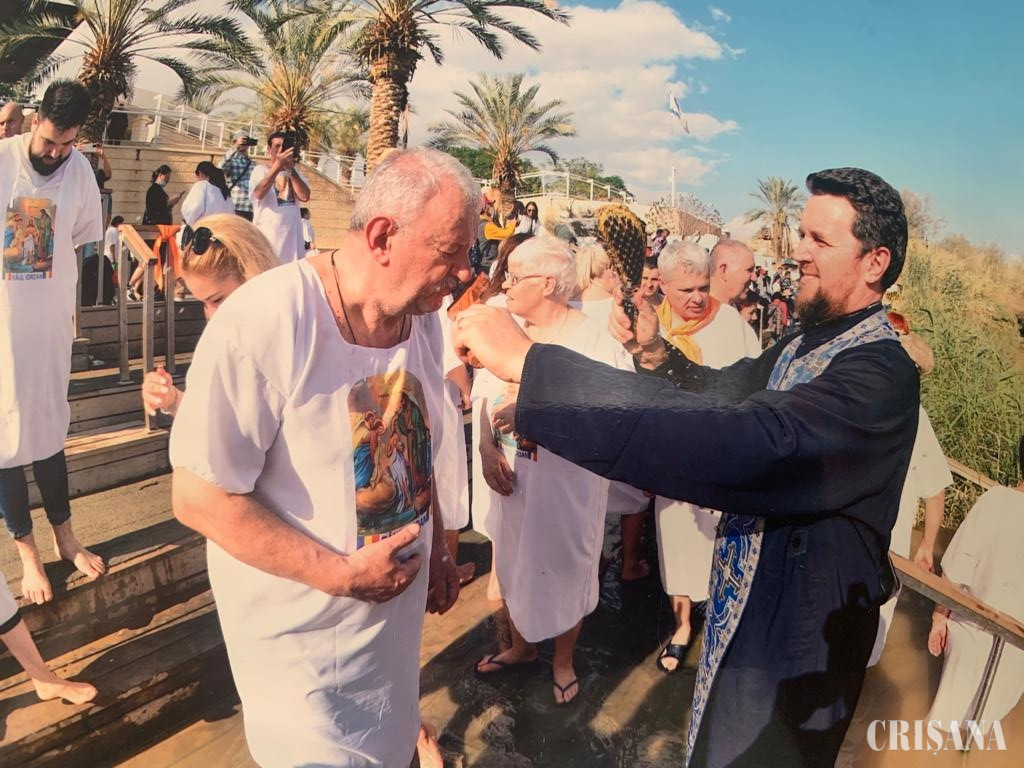 Spre marea mea mirare, deși fusesem încălzit înainte de căldura deșertului Hozevei, după intrarea în apa Iordanului, nu numai că nu am făcut pneumonie sau răceală, dar nu am avut nici măcar un semn de guturai, ci dimpotrivă m-am simțit mai sănătos ca nicicând. Am făcut o fotografie cu preotul Pașca, după ce i-am destăinuit emoția trăită de Bobotează în copilărie și apoi ne-am îndreptat cu toții spre vestiare să ne echipăm, după ce am primit fiecare din partea preoților noștri îndrumători câte un certificat de botez în râul Iordan. (Va urma)