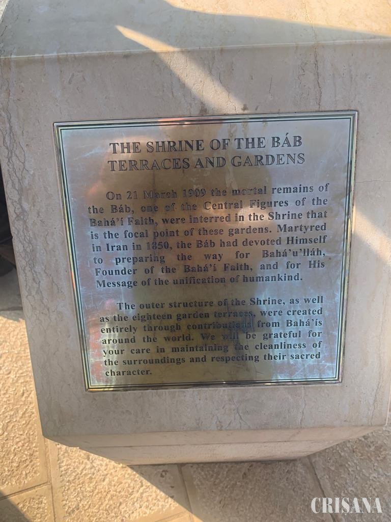 Dar a sosit vremea să nu ne mai închinăm nici noi tăblițelor de tot felul, din care una are titlul: THE SHRINE OF THE BAB TERRACES AND GARDENS (Altarul teraselor și grădinilor baha΄i ), tăblițe care se ridică pe lângă trotuarele aflate la înălțimea crestelor Muntelui Carmel despre această religie baha΄i și să putem merge mai departe în pelerinajul întrerupt pentru câteva ore la Haifa, orașul viitorului… (Va urma)