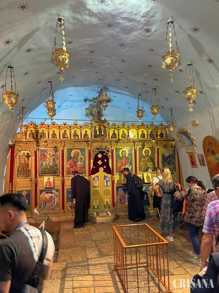 La început, ne spune părintele Ciprian, aici a fost doar o biserică foarte modestă, un loc de rugăciune unde se adunau primii creștini spre a cinsti locul divin, lucru ce reiese în urma vizitării acestei peșteri unde o veche inscripție arată că locul a fost folosit pentru îngroparea a trei dintre păstori. Dar în peștera păstorilor alături de ceilalți pelerini bihoreni am văzut văzut mozaicuri și urme lăsate de săpăturile arheologice care indică deosebita vechime a locului, iar deasupra peșterii am putut vedea mai multe coloane, vase din piatră și alte obiecte păstrate de la biserica din secolul al V-lea. Aflăm de la părintele Ciprian că la începutul secolului al VI-lea s-a ridicat un alt sfânt locaș mai mare pentru a se putea oficia cum se cuvine slujbele preoților și să adăpostească mulțimea pelerinilor închinători. A urmat dezastrul cauzat de invazia perșilor din anul 614 care a măturat întreaga Palestină creștină și ale cărei urme se constată și azi. Din fericire, după tristul eveniment, Patriarhul Modest al Ierusalimului a refăcut biserica păstorilor, aproximativ pe la 670. Marea biserică a fost ridicată însă cu începere din anul 1972, când în urma unor săpături arheologice s-au mai descoperit ruinele a trei lăcașuri din secolele V-VII. Biserica din zilele noastre are trei altare, cel din mijloc este închinat Maicii Domnuui, cel din dreapta este consacrat Sfântului mare mucenic Pantelimon, iar cel din stânga este dedicat Sfinților Arhangheli Mihail și Gavriil. Biserica are o nouă pictură cu multe episoade memorabile din istoria mântuirii și un mobilier sculptat în lemn cu deosebită artă și pricepere, iar acustica locului este una specială, impresionantă, unde se aud foarte bine toate luările de cuvânt ale preoților noștri, bineveniți călăuzitori ai pelerinilor în Țara Sfântă. (Va urma)