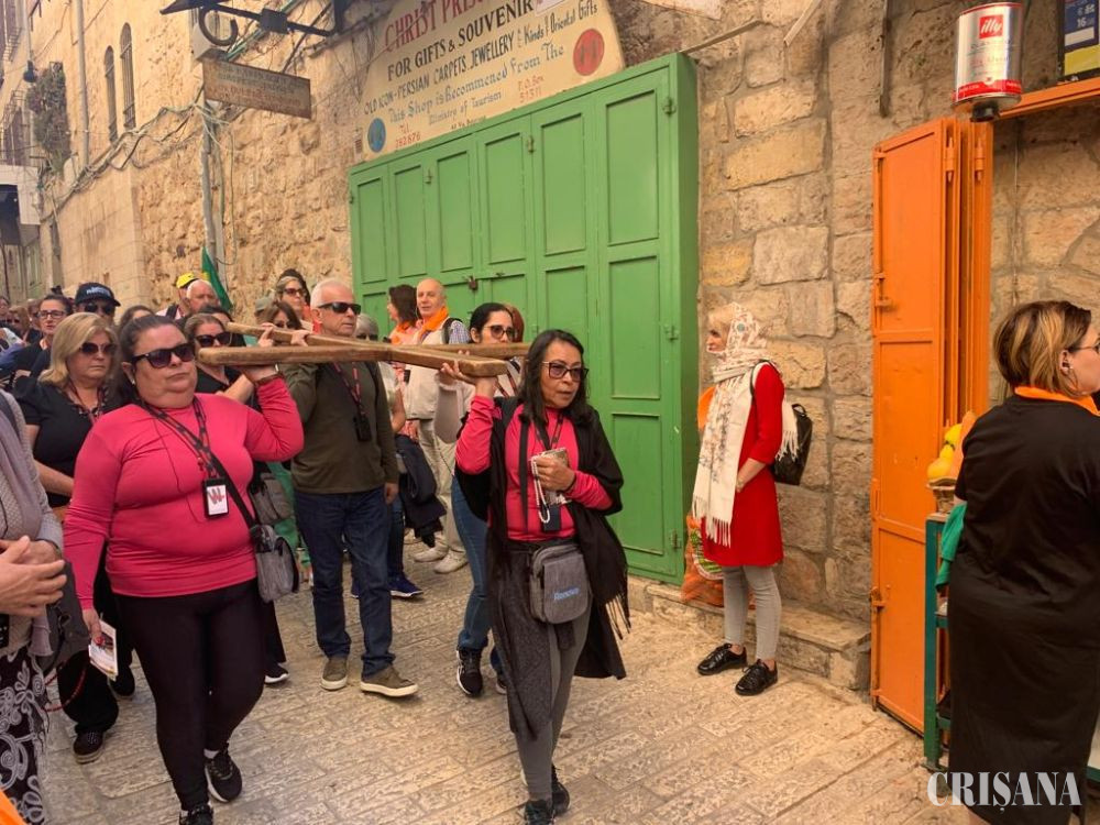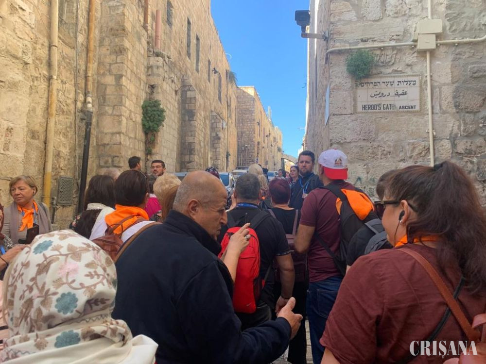 Trebuie mereu să ne strângem rândurile în jurul părinților noștri, suntem asaltați de grupuri de pelerini din toată lumea, suntem într-o zi de vineri pe Via Dolorosa și aglomerația crește. Ce o fi aici în Vinerea Mare nu este greu de închipuit!