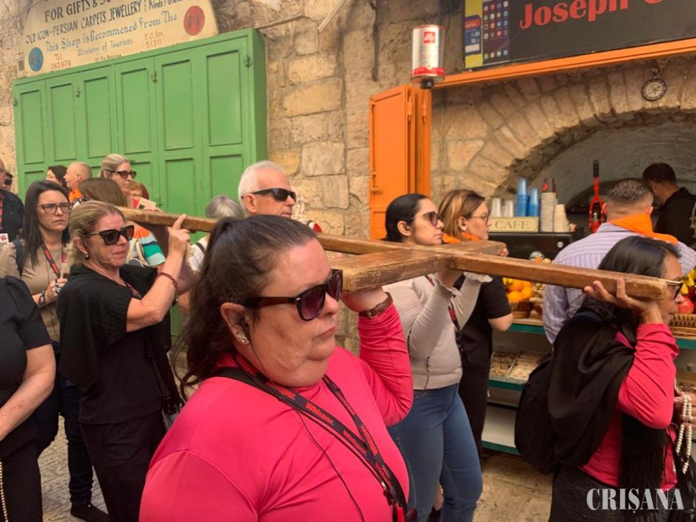 Părintele Ciprian ne mai dezvăluie un lucru ciudat: Via Dolorosa care începe la poarta Sfântului Ștefan (numită în vechime Poarta Oilor și acum Poarta Leilor), în ciuda bisericilor care o înconjoară este, de fapt, în Cartierul Musulman al Ierusalimului. În anul 1990, o inițiativă lăudabilă pentru dezvoltarea Ierusalimului de Est a municipalității a deschis aici un fel de centru de primire a pelerinilor, cam la 30 de metri dincolo de poarta Sfântului Ștefan, acesta fiind un ultim, dar necesar retuș al unui delicat proiect de renovare a Viei Dolorosa, demers ce a cuprins restaurarea clădirilor părăginite și a arcadelor cu inscripții de tot felul, suspendate de-a lungul emoționantului traseu și înlocuirea sistemului de canalizare vechi de patru sute de ani și apoi de marcare corespunzătoare a tuturor popasurilor Drumului Golgotei. Când piața a fost curățată de moloz, de pietriș și alte materiale, au fost expuse uriașele dale de piatră din vremea stăpânirii romane. Mutatis mutandis, un fel de Romă a fost readusă la viață după două mii de ani și în mod sigur se crede că acele dale de piatră să fi fost călcate de Iisus și apostolii săi. Un lucru ce ne emoționează până la lacrimi! De aceea, părintele Ciprian ne îndeamnă să umblăm cu venerație pe această stradelă cu dale atât de vechi și care au simțit greutatea trupului lui Iisus împovărat sub cruce și care au fost udate atunci cu sudoarea și sângele Său. În ciuda acestui aspect, suntem tulburați în drumul nostru de arabi care conduc motociclete zgomotoase pe Via Dolorosa, stârnind în chip firesc reacția noastră de dezaprobare. Este și aceasta o încercare căreia noi, pelerinii bihoreni, trebuie să-i facem față în pelerinajul nostru de neuitat. (Va urma)