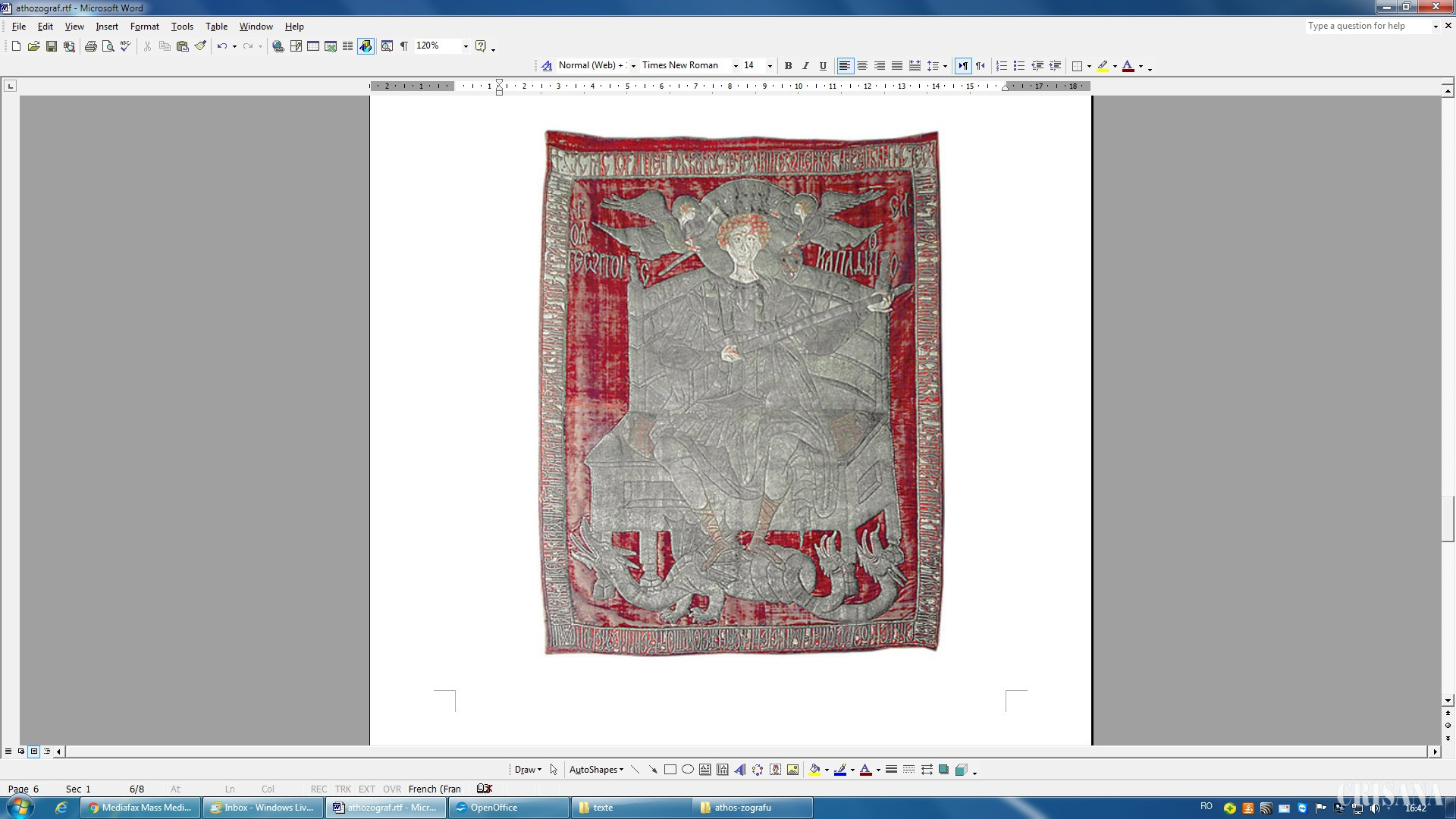 Dar călugărul însărcinat cu îndrumarea noastră prin mânăstire ne-a dus la o icoană care ne-a stârnit în cel mai înalt grad uimirea. De ce ? Până în ziua de azi, această icoană a Sfântului Gheorghe poartă pe ea urma unui deget omenesc. Acest deget care s-a lipt de chipul icoanei a aparţinut episcopului din eparhia de Vodin. Acesta, chiar faţă bisericească fiind, nu a crezut, când a ajuns la mânăstirea Zografu, că icoana sfântului Gheorghe s-a zugrăvit ea singură, prin lucrarea Duhului Sfânt. Episcopul cel raţional în faţa oamenilor, dar nebun în faţa puterii lui Dumnezeu, a atins în chip batjocoritor icoana. Apoi, vrând să iasă din biserică, nu a mai putut, degetul fiindu-i lipit de icoană. A sucit, a învârtit bietul deget, a tras în sus, a tras în jos, la stânga, la dreapta, nimic. Degetul a continuat să stea lipit de chipul Sfântului Gheorghe. Nici o metodă nu a mai folosit episcopului celui nebun să desprindă degetul. A tras cât a putut de tare, degetul a început să-l doară şi tot nu se dezlipea de icoană. A fost nevoit să taie degetul ca să poată scăpa de icoana pedepsitoare. Toţi pelerinii din Bihor, am văzut, cu proprii noştri ochi, acest rest de unghie şi carne din deget cum se distinge clar pe faţa icoanei, iscându-ne fiori reci pe şira spinării în faţa nespusei puteri a lui Dumnezeu.