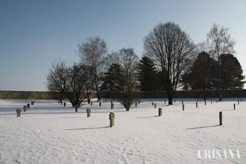 Au existat aici câteva zeci de barăci uriaşe de lemn în care erau îngrămădiţi unii peste alţii, la propriu, în paturi mici, etajate, mii de oameni. Au fost păstrate câteva barăci pentru posteritate, restul au fost rase. Se mai văd doar fundaţiile, iar în câteva perimetre înconjurate cu sârmă ghimpată, păstrată şi azi, s-au amenajat cimitire pentru morţii care au fost găsiţi aici şi pe care nu apucaseră să-i ardă, în momentul sosirii trupelor americane. O inscripţie arată că odihnesc în gropi comune peste 10.000 de oameni. Şi inscripţia adaugă un lucru şocant: aici se odihnesc şi foşti deţinuţi eliberaţi în mai 1945, dar care şi-au exprimat prin testament dorinţa ca după moarte să fie îngropaţi aici. De ce şi-ar dori cineva să doarmă somnul de veci în temniţa tinereţii lor, în blestematul loc unde au cunoscut oroarea vieţii de sclav?! Este de neînţeles pentru mine.