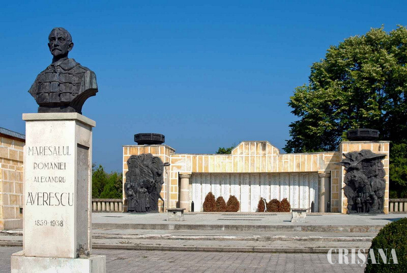 În centrul parcului unde se află mausoleul, între arbuşti ornamentali, a fost amplasat un grup statuar, realizat în tehnica ronde-bosse, din bronz, care înfăţişează un soldat rănit care predă unui tânăr arma şi făclia pentru continuarea luptei. În spatele grupului statuar, pe un postament din beton placat cu piatră de Vratza, a fost înălţat bustul mareşalului Alexandru Averescu, inaugurat în octombrie 1940, operă a sculptorului Oscar Späthe. Bustul îl înfăţişează pe mareşal în uniformă militară, ţinută de campanie, frontal, cu capul descoperit.
